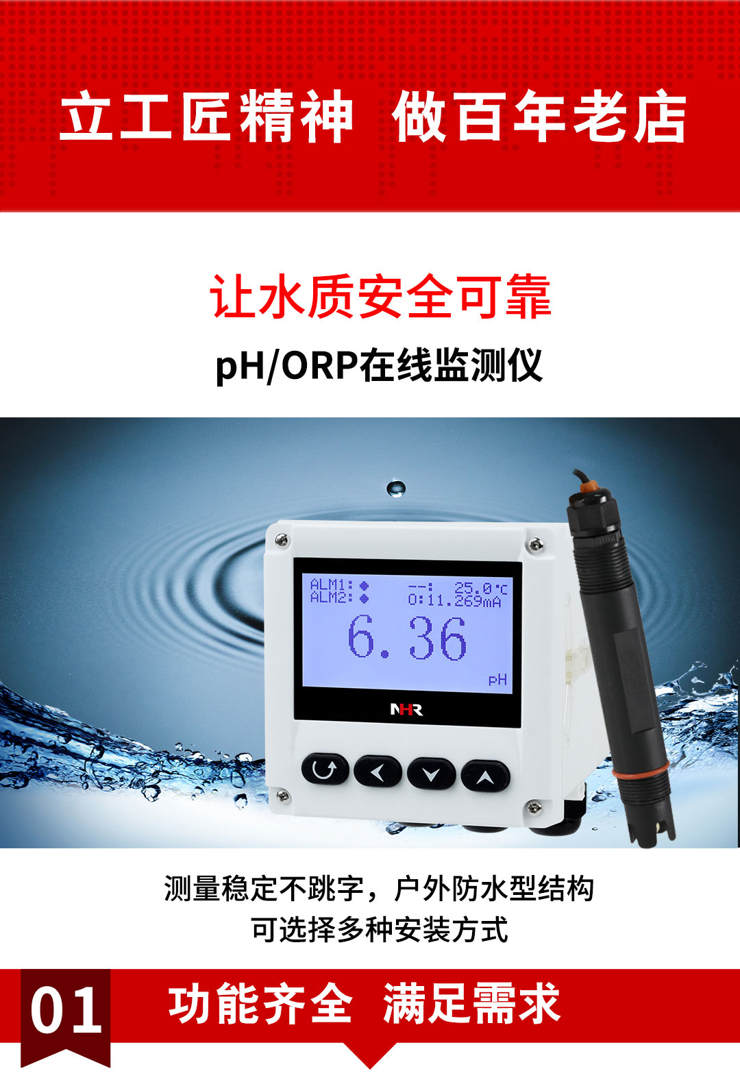 虹潤公司是專業(yè)生產(chǎn)水質(zhì)分析儀的國家專精特新“小巨人”企業(yè)。生產(chǎn)的PH/ORP在線監(jiān)測(cè)儀,具有多元化安裝方式,IP65防護(hù)等級(jí),多種類型輸出,測(cè)量精準(zhǔn)穩(wěn)定不跳字,變送輸出精準(zhǔn)等特點(diǎn)。產(chǎn)品獲得一種適應(yīng)性強(qiáng)PH控制儀、智能化控制器等2項(xiàng)國家發(fā)明專利;主持起草現(xiàn)場設(shè)備集成等5項(xiàng)智能制造國家標(biāo)準(zhǔn),以及現(xiàn)場設(shè)備工具(FDT)接口規(guī)范、工業(yè)過程控制系統(tǒng)用模擬輸入兩位或多位輸出儀表、過程分析技術(shù)系統(tǒng)等3項(xiàng)國家標(biāo)準(zhǔn);參與國際5G標(biāo)準(zhǔn)制定,取得PH值測(cè)量儀表等2項(xiàng)相關(guān)軟件著作權(quán)。產(chǎn)品廣泛應(yīng)用于實(shí)驗(yàn)室、水處理、環(huán)境監(jiān)測(cè)、食品、制藥、農(nóng)業(yè)等諸多領(lǐng)域。