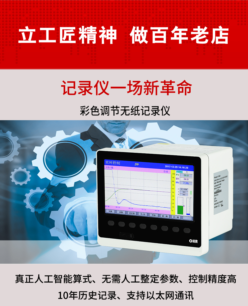 虹潤公司是專業(yè)生產(chǎn)溫控器的國家專精特新“小巨人”企業(yè)。生產(chǎn)的彩色調(diào)節(jié)無紙記錄儀,具有8路PID獨(dú)立控制,真正人工智能算式,無需人工整定參數(shù),控制精度達(dá)士0.1°C,支持以太網(wǎng)/RS485通訊輸出等特點(diǎn)。產(chǎn)品獲得智能化控制器、人工智能調(diào)節(jié)器及調(diào)節(jié)方法、模糊PID控制儀及控制方法、一種平板無紙記錄儀、巡回檢測顯示方法及裝置等5項(xiàng)國家發(fā)明專利,主持起草物聯(lián)網(wǎng)智能記錄儀表通用技術(shù)條件、物聯(lián)網(wǎng)智能溫度儀表通用技術(shù)條件、工業(yè)過程測量和控制系統(tǒng)用智能調(diào)節(jié)器等3項(xiàng)國家標(biāo)準(zhǔn),通信系統(tǒng)多通道數(shù)據(jù)采集控制終端規(guī)范軍用標(biāo)準(zhǔn),以及空間數(shù)據(jù)與信息數(shù)據(jù)傳輸系統(tǒng)等2項(xiàng)航天標(biāo)準(zhǔn)。參與國際5G標(biāo)準(zhǔn)制定,取得液晶數(shù)據(jù)采集無紙記錄儀等4項(xiàng)相關(guān)軟件著作權(quán)。產(chǎn)品廣泛應(yīng)用于電石化、工業(yè)爐、試驗(yàn)設(shè)備、注塑機(jī)械、包裝機(jī)械等需要對現(xiàn)場溫度進(jìn)行監(jiān)測控制的行業(yè)。
