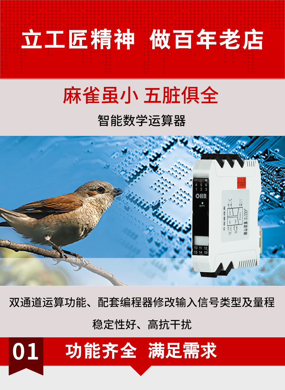 虹潤公司是專業(yè)生產(chǎn)運算器的國家專精特新“小巨人”企業(yè),生產(chǎn)的智能數(shù)學運算器,具有全切換信號輸入,加減乘除數(shù)學運算,穩(wěn)定性好,高抗干擾,RS485/RS232通訊等特點。產(chǎn)品獲得巡回檢測顯示方法及裝置、儀表殼體等2項國家發(fā)明專利,主持起草工業(yè)過程控制系統(tǒng)用模擬輸入兩位或多位輸出儀表、物聯(lián)網(wǎng)智能溫度儀表通用技術條件等2項國家標準,,以及通信系統(tǒng)多通道數(shù)據(jù)采集控制終端規(guī)范軍用標準,參與國際5G標準制定,取得雙回路數(shù)字顯示控制儀表等3項相關軟件著作權(quán)。產(chǎn)品廣泛應用于電力、石化、冶金、化工、造紙、食品、輕工、制藥、熱處理、水處理、機械配套等各種工業(yè)現(xiàn)場。